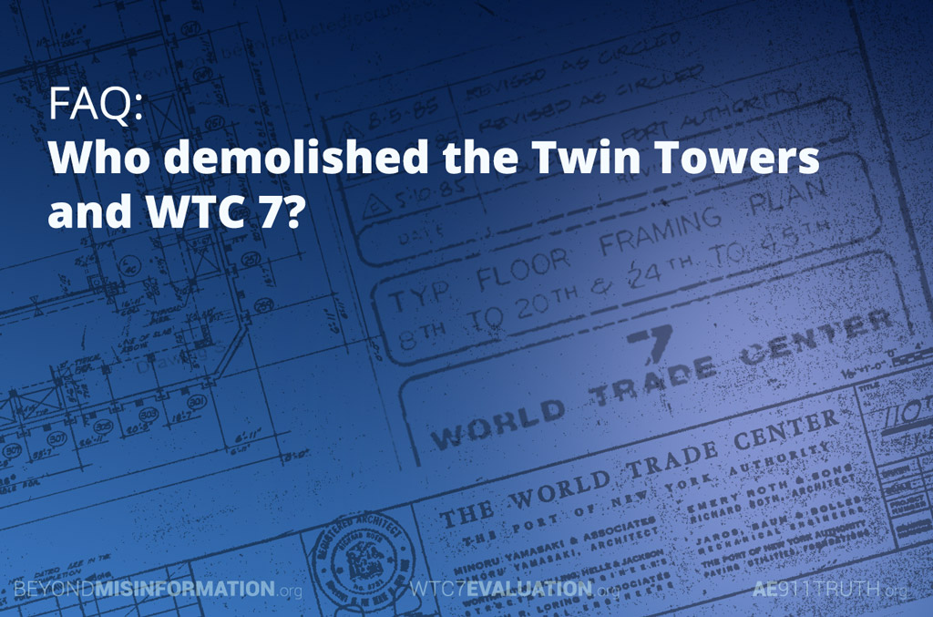 The technical experts at AE911Truth have performed the important task of gathering and analyzing the scientific evidence that proves, beyond a reasonable doubt, that the Twin Towers and WTC 7 were brought down by explosives. Now that the crime of explosive destruction has been confirmed by our experts, it is the duty of government officials to heed international calls for a real investigation. Until such an inquiry is carried out, the effort to determine the identities of the criminals is limited to those who are willing to conduct the research and construct working theories based on that research.