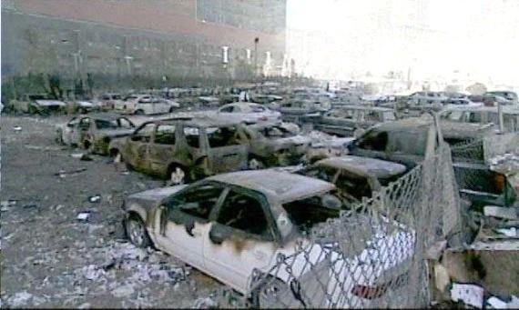 Wood suggests that the tops and other portions of damaged vehicles near Ground Zero may also be attributed to DEW, yet doesn't provide a possible scenario as to how DEW might account for this phenomenon, particularly in view of the fact that the towers reached high above ground while the cars were on the ground.