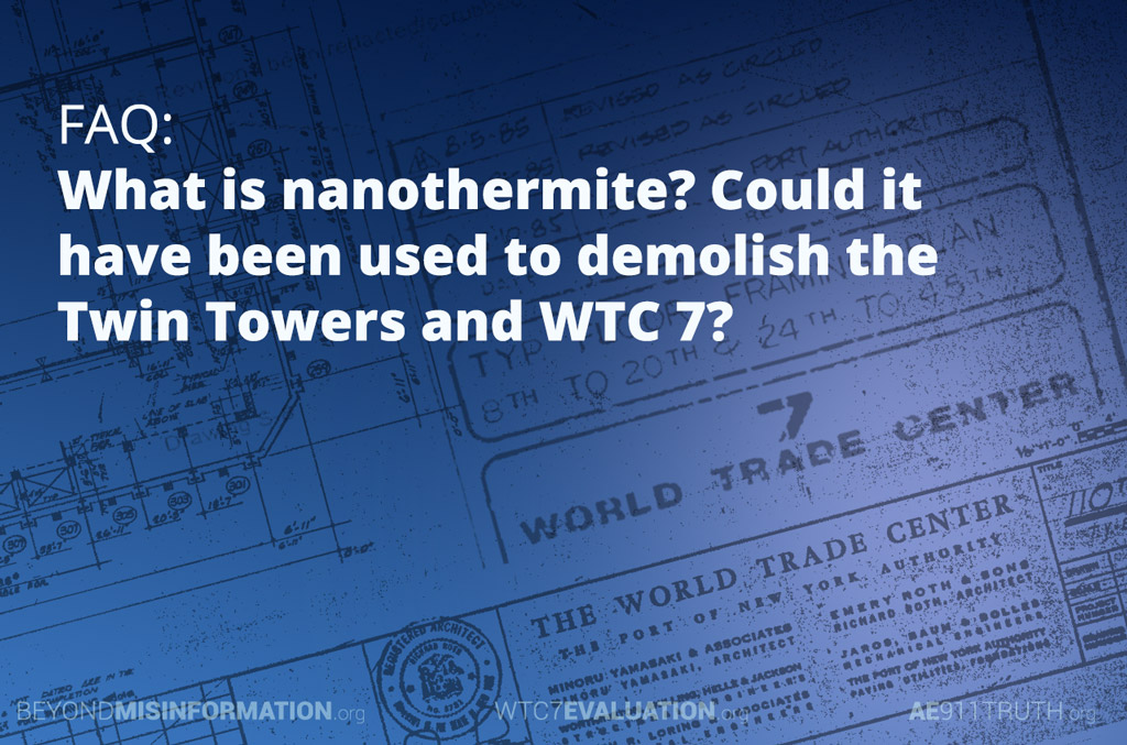 To read more about the thermitic materials that were involved in the destruction of the three World Trade Center towers, see the AE911Truth Evidence webpage and our original article about the discovery of these composites in the WTC dust.