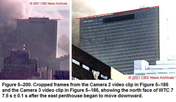 * NIST's analysis ignores the fact that what appears to be a downward kink in the top of the north face of the building, in some videos, is actually an inward movement of the north-facing wall, in which the top of the wall moves away from the camera.[2]