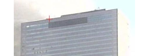 [1] and [4] North Face (Camera 3 – after collapse of the east penthouse): The NIST “point” at which they measure the descent of the building. NCSTAR 1-9, Vol. 2, p. 600Given the mismatch between the NIST computer animations and the video record of the actual destruction, it is clear that NIST’s assumptions (computer inputs) were substantially in error. It was NIST’s job to explain the destruction that actually occurred, not to posit some possible way in which the destruction could have occurred. Its model, which does not reflect the observed 2.25 seconds (about 100 feet) of free fall, should be judged a complete failure, or a cover-up.