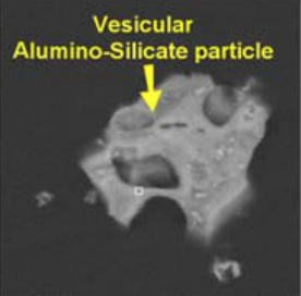 A scanning electron microscopy image with EDS of vesicular alumino-silicate provided by RJ Lee.
