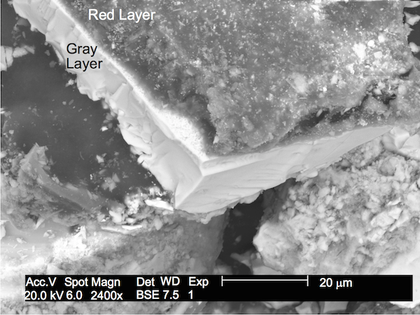 According to their analyses, the gray sides of the chips consisted of “high iron and oxygen content including a smaller amount of carbon,” while the red sides had various features indicative of thermite and nano-thermite.