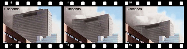 Figure 2. WTC 7 came down in full free-fall for at least the first third of its fall. Its structure completely shattered in under seven seconds.