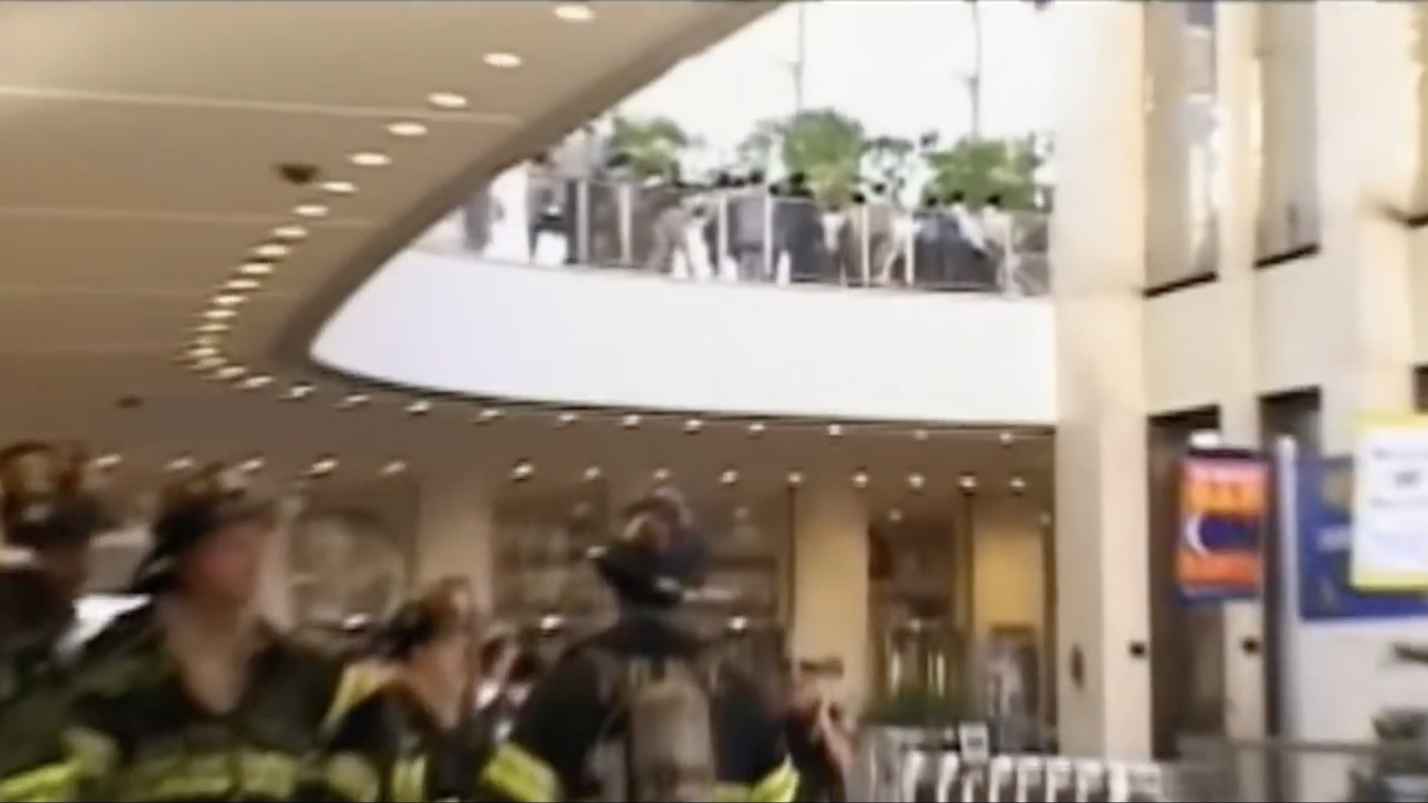 “We did that for a good 10 to 15 minutes, then that guy came across and the door slammed shut, and we didn’t see anybody else come out. There were two firefighters and a civilian guy there with me, and we were standing outside Five World Trade.”