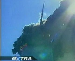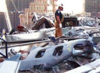 Photo from Ground Zero shows a portion of the airplane fuselage, which contradicts the framework of NIST's “shotgun test” for fireproofing loss in the Twin Towers.Ryan's assertion that “. . . aircraft debris was a distribution of sizes from very large chunks to a few smaller ones” is well grounded, as photographs show that large portions of the planes exited the Towers, and eyewitnesses who escaped from the Towers reported seeing intact portions of the plane in the building.3
