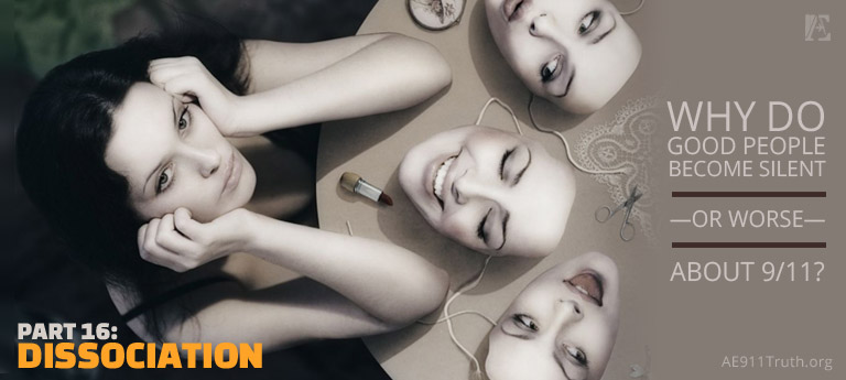 When such a vulnerable person hears the evidence that 9/11 skeptics present, he may react with a sudden bulging or glazing of his eyes, or the blood may drain from his face, or he may become silent and unresponsive as though disoriented, so that he appears “spacey.”3 These physiological signs are indications that the memory of an early, shocking, repressed event has been activated, and the person is again dissociating. Understandably, most victims with this condition assiduously avoid 9/11 truth-tellers and their fact-based and forensic information.