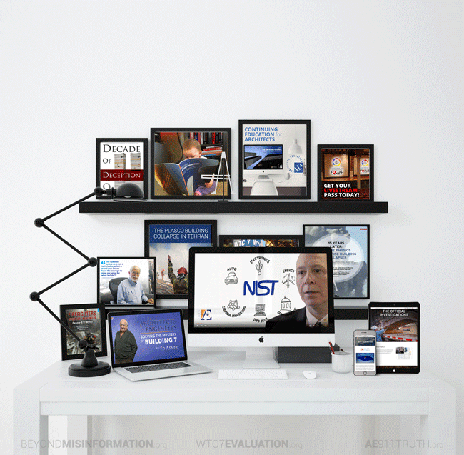 Please note that because Architects & Engineers for 9/11 Truth is dedicated to researching and disseminating scientific information about the destruction of three World Trade Center skyscrapers on September 11, 2001, and does not speculate as to the identity or motives of the perpetrators, any reference to names or motives of the attackers in this series of articles, made by either the author or the individuals she quotes, is a personal opinion and not the viewpoint of AE911Truth.