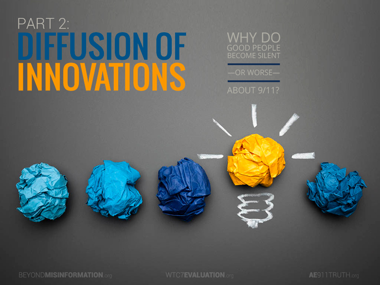 In this installment, we continue Ms. Shure's analysis with "Part 2: Diffusion of Innovations," an anthropological study of how new ideas become accepted in societies and, based on that, a look at possible ways the truth about what really happened on 9/11 can become accepted.