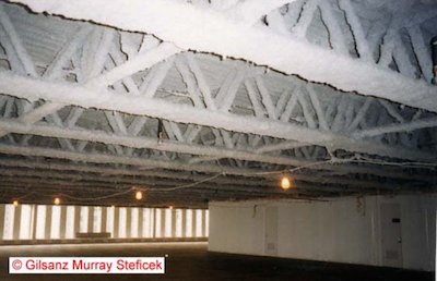 Because such dislodgement would not have been visible from outside the buildings, the extent of dislodgement had to be estimated based on where NIST’s aircraft impact simulations predicted damage to wall partitions or furnishings. At the very end of its investigation, NIST finally performed physical testing “to provide evidence regarding the assumption that...the SFRM used for thermal insulation of structural members was damaged and dislodged.” This testing, contained in NIST’s “Debris Impact Study,” involved shooting 15 rounds from a shotgun at a flat steel plate and a metal bar coated with fireproofing inside a plywood box. Referring to that experiment, Kevin Ryan writes: