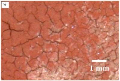 This photograph shows the mud cracking of paint on the WTC steel after exposure to 250°C for one hour. Only three out of 170 tested areas on recovered exterior columns reached 250°C.