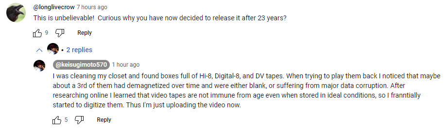 According to a comment he left under the video, Sugimoto rediscovered the footage when cleaning out a closet.