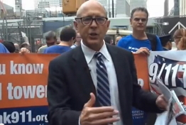 AE911Truth is just as at-home and productive in the streets educating New Yorkers as it is educating students and faculty in universities and building and design experts in professional settings. The non-profit group's three-day outreach began on Thursday morning, September 11, with a milestone press conference held at the corner of Vesey and Church right in front of the Liberty Tower. AE911Truth founder Richard Gage, AIA, opened the press conference to a dozen cameras. "We are here to tell the truth to the American people about that day, because they have not received the truth, the evidence. There are very serious problems with the official story, which has become the official myth." Gage proceeded to announce the upcoming New York City premiere of The Anatomy of a Great Deception and the symposium "The 9/11 Awakening Goes Mainstream," as well as the concurrent giant video billboard in Times Square.