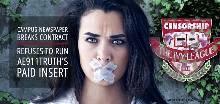 Only one of the universities — Cornell — allowed AE911Truth to publish its brochure in the campus paper, The Cornell Daily Sun.