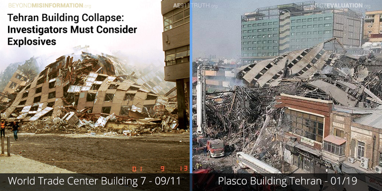 Based on preliminary analysis of many videos of the collapse, Architects & Engineers for 9/11 Truth (AE911Truth)—a nonprofit that represents more than 2,750 architects and engineers who are calling for a new investigation of the 2001 World Trade Center disaster—strongly urges President Rouhani, Iranian authorities, and the people of Iran to thoroughly investigate the possible use of explosives in the Plasco Building’s shocking demise, and to act swiftly and decisively to preserve the physical evidence.