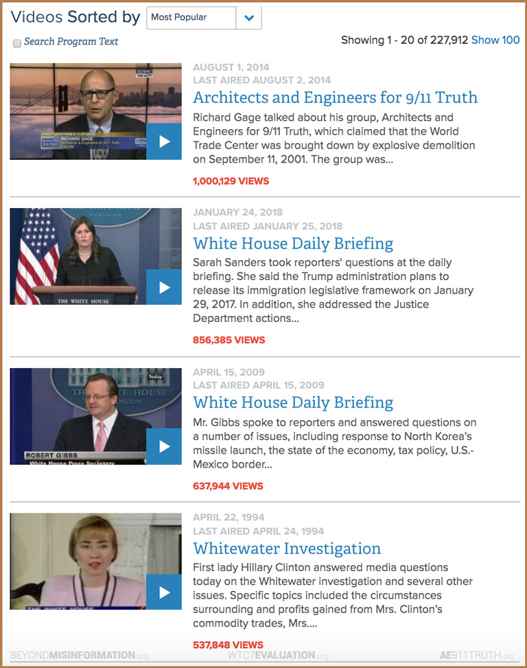 Earlier this week, Richard Gage’s 2014 C-SPAN interview surpassed one million views on CSPAN.org, cementing its place as the network’s most-watched video of all time.
