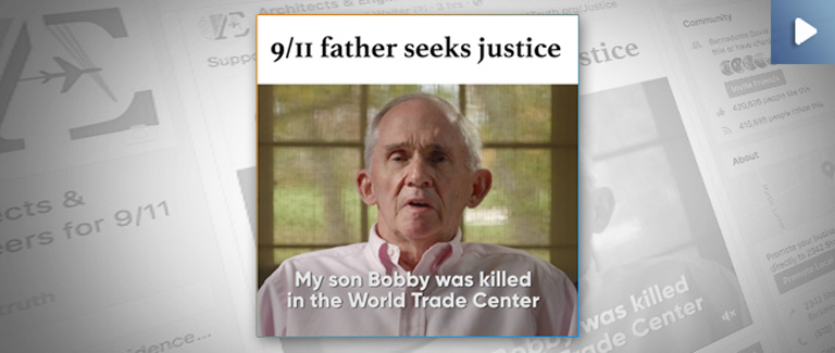 “9/11 Father Seeks Justice,” featuring Bob McIlvaine and promoting the Bobby McIlvaine Act, has climbed to 1.6 million views on Facebook since its release just three months ago, in December 2017.
