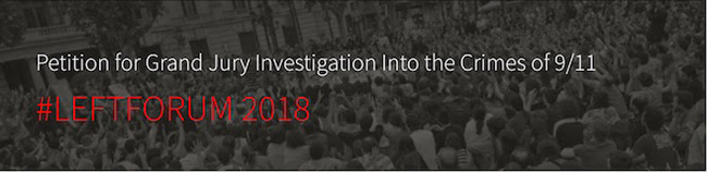 This Saturday, June 2nd, at 12:00 PM Eastern / 9:00 AM Pacific, three representatives of the Lawyers’ Committee for 9/11 Inquiry will participate in a panel discussion at the Left Forum in New York City titled “Petition for Grand Jury Investigation Into the Crimes of 9/11.”