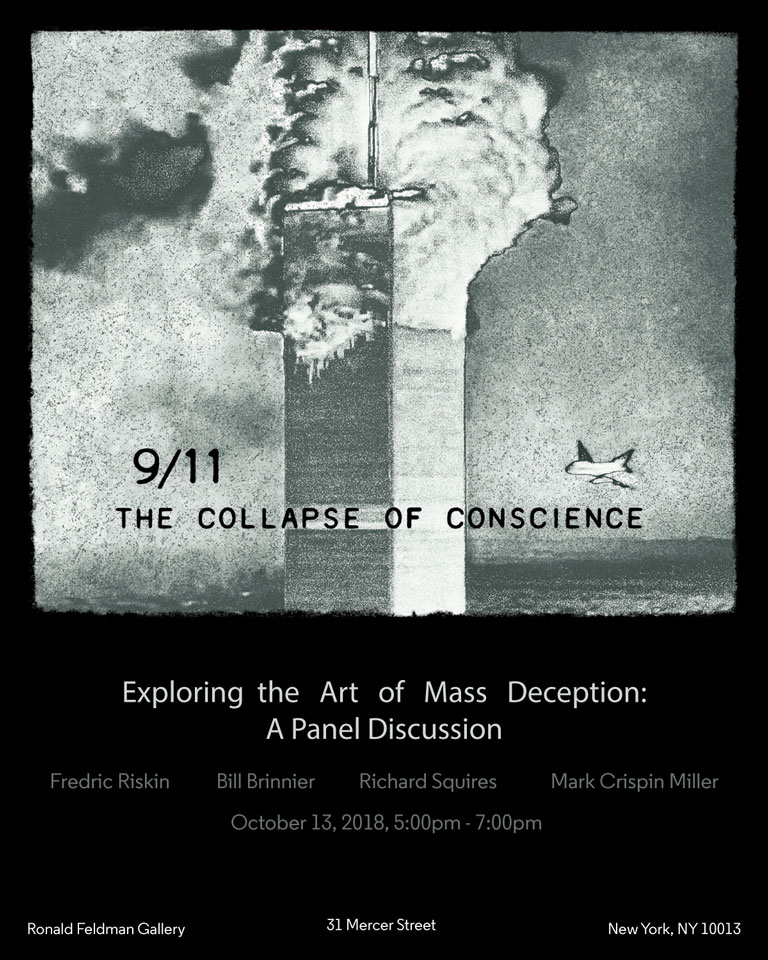 On September 11 of this year, the Ronald Feldman Gallery in the Soho district of New York City launched a bold multimedia exhibit by renowned conceptual artist Fredric Riskin titled “9/11: The Collapse of Conscience.”