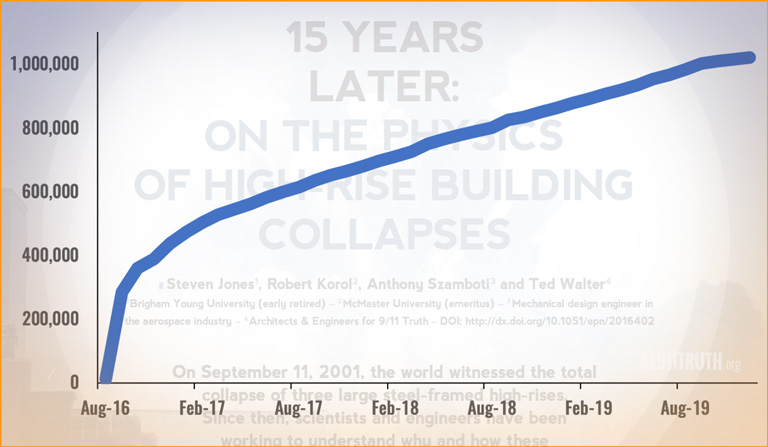 What we can say for sure, though, is that “15 years later: on the physics of high-rise building collapses” — the five-page feature in the August 2016 issue of the European Physical Society’s Europhysics News by Dr. Steven Jones, Dr. Robert Korol, engineer Tony Szamboti, and AE911Truth’s Ted Walter — has been read, and continues to be read, by a massive number of people.