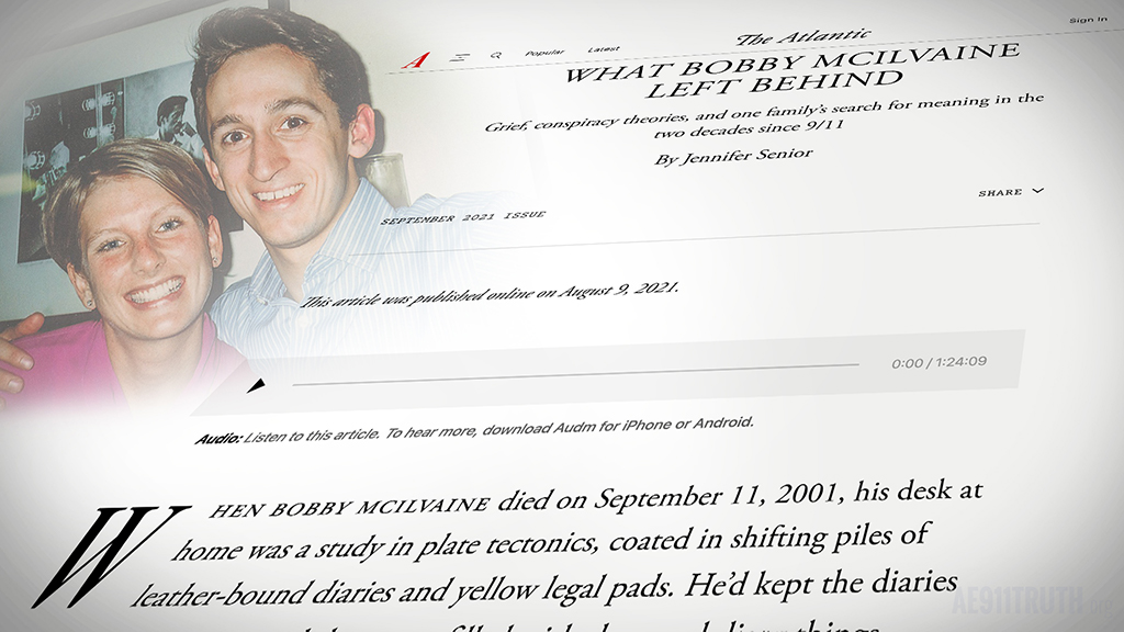 Bob’s relentless pursuit of truth is a major element of the piece, and the work of AE911Truth is mentioned twice as the impetus for his and his wife Helen’s rejection of the official story.