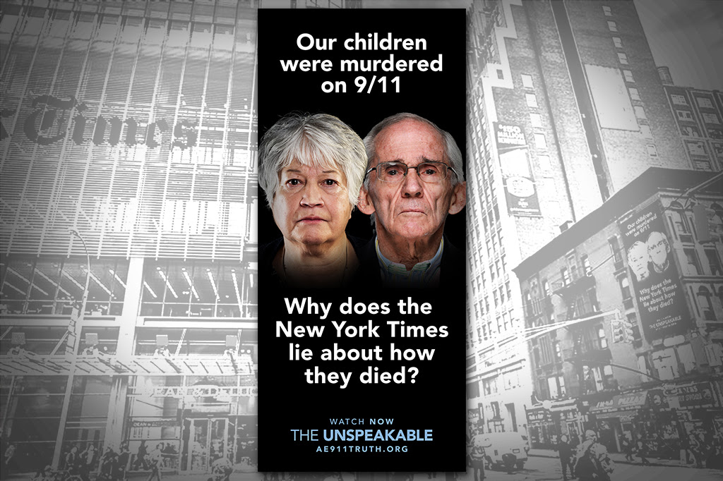 Will you give now to send the New York Times this powerful message from the parents of two 9/11 victims and promote AE911Truth’s new film The Unspeakable?