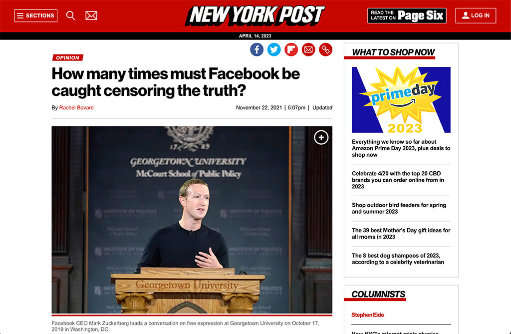 Not only Google, however, has embraced the “Ministry of Truth” role for their users. Social media companies such as Facebook have also been accused of attempting to control the content that its users see.