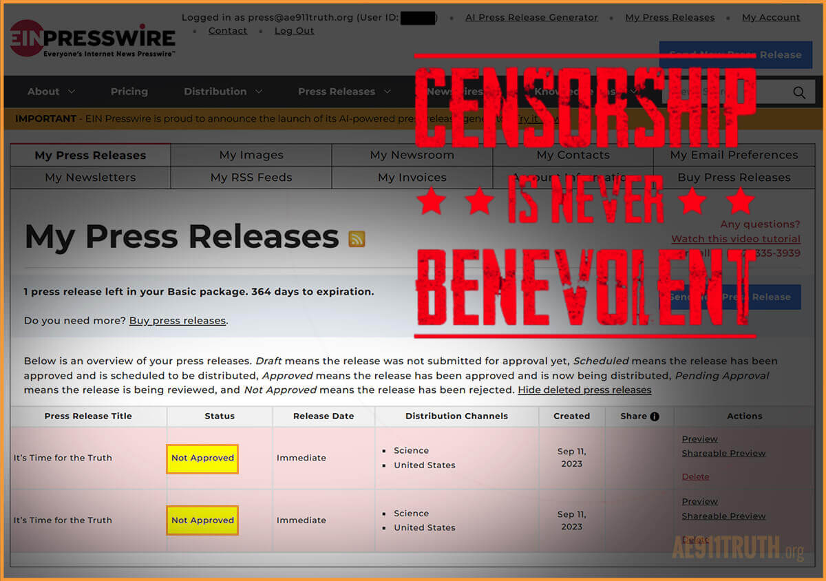 A (CENSORED) Statement from AE911Truth...